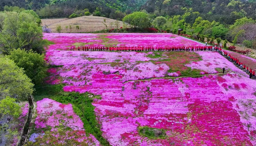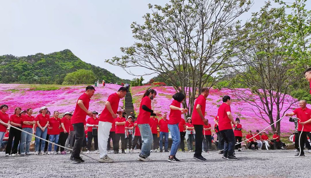 石門里霧峰花海處,芝櫻花競相綻放,如同自然界的畫家在大地上揮灑的色彩,美不勝收。吹著山風,聞著花香,賞著美景,我們的團隊趣味競技活動就在這里拉開序幕。